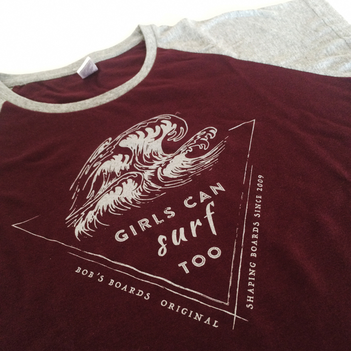Are you a surfer girl? Have you even felt being underestimated on the line-up? Then you know the feeling! Slim fit reglan tshirt with a bold print GIRLS CAN SURF TOO.